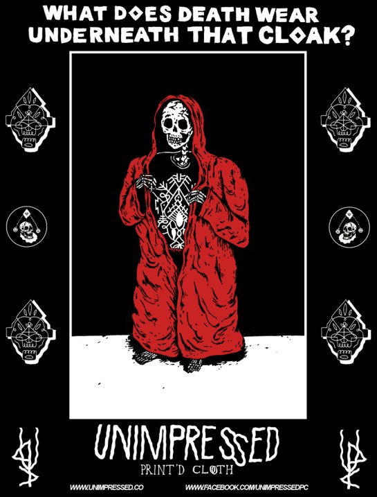 June 1, 2012Online Store, T-Shirts, Unimpressed 666 Leave a comment Death’s Cloak What does death wear underneath that cloak? These I think… Share this: Share on Facebook (Opens in new window) Facebook Share on X (Opens in new window) X Share on Pinterest (Opens in new window) Pinterest Share on Tumblr (Opens in new window) Tumblr Like Loading... Related deathMelbourneUnimpressedUnimpressed Print'd Cloth